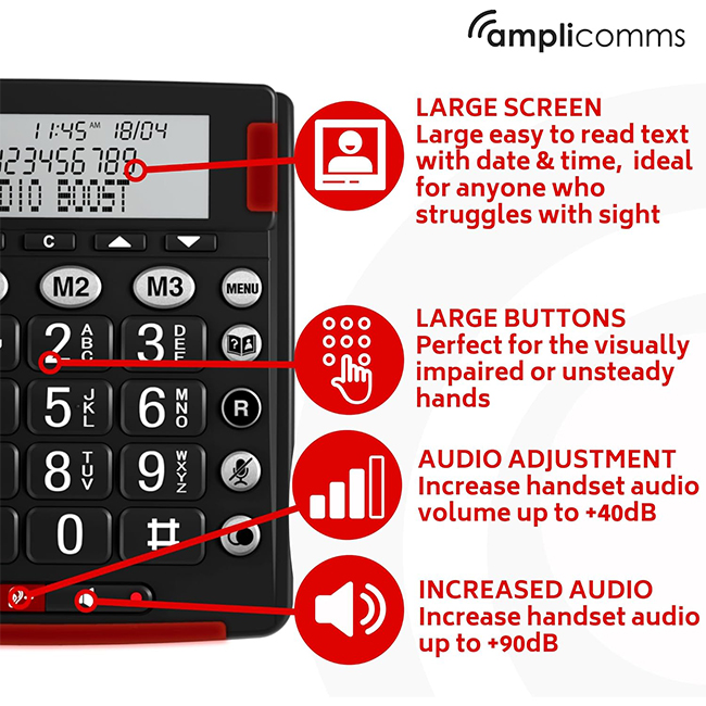 Amplicomms has built a strong reputation for producing accessible communication devices tailored to those who need enhanced sound and easy operation. Their phones are designed to be intuitive, durable and dependable — giving you peace of mind with every call.