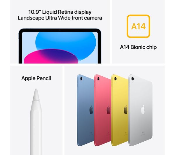 - Liquid Retina Display: Immerse yourself in the vibrant Apple 10.9-inch iPad Liquid Retina display. Enjoy crisp details, vivid colours, and True Tone technology that adapts to your environment for comfortable viewing in any light.