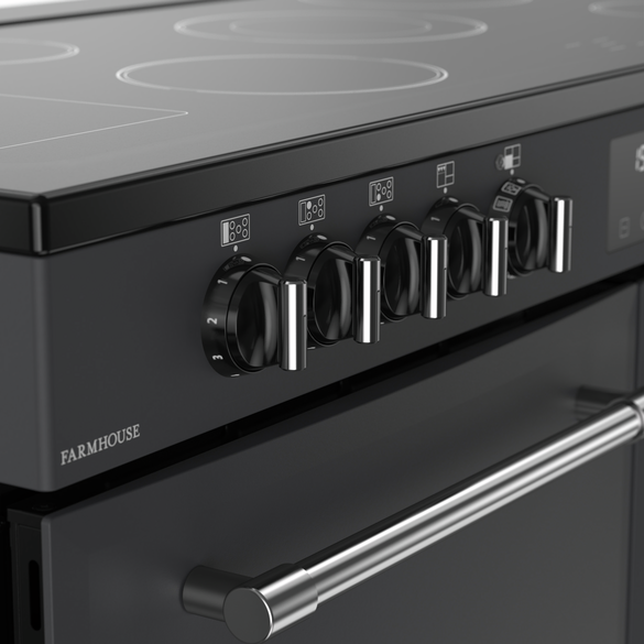 The Farmhouse look is all about charm, presence and practicality. At 110 cm wide, this cooker fills your kitchen with character while providing serious cooking real estate. It features multiple cooking cavities and a standout hob area — giving you the flexibility to roast, bake, grill and simmer all at once. With its anthracite finish or classic tones, the Farmhouse style works beautifully in both country‑inspired and modern kitchens.