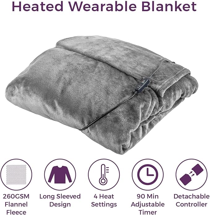 Ideal for evenings on the sofa, working from home, or lazy weekends, this heated wearable blanket keeps you warm without turning up the heating.