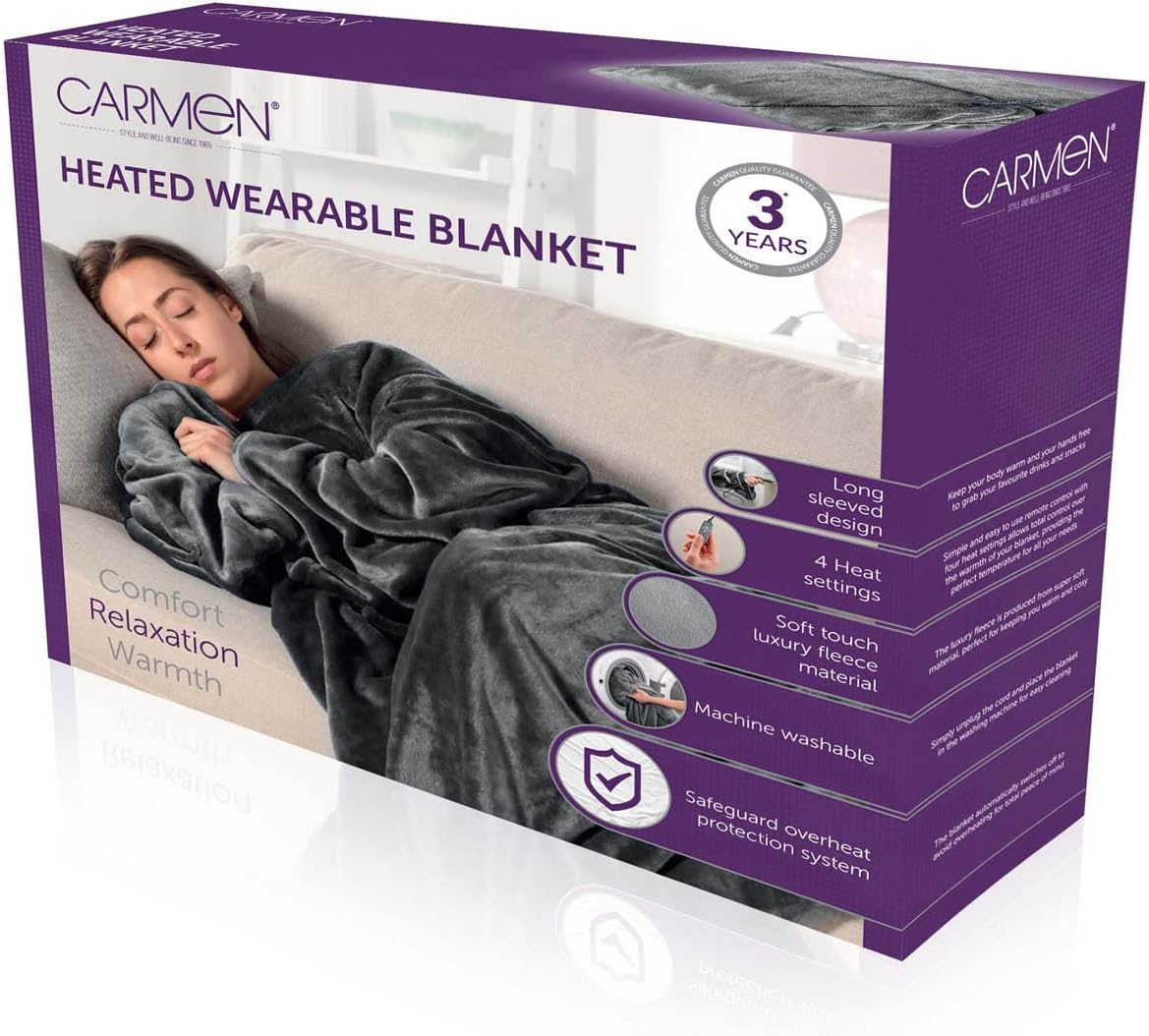 When the colder months arrive, staying warm shouldn’t mean being stuck under a heavy blanket. The Carmen C81149GRY Heated Wearable Blanket offers the perfect solution — combining luxurious comfort, gentle heat and a wearable design that lets you relax, move, and unwind in total cosiness.