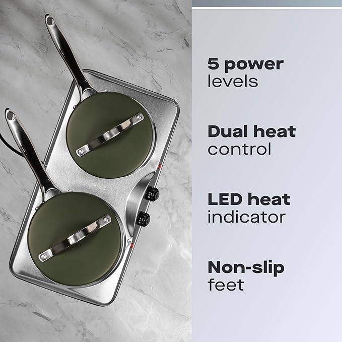 This double hot plate is built for convenience — lightweight enough to move, yet durable enough to withstand frequent use.