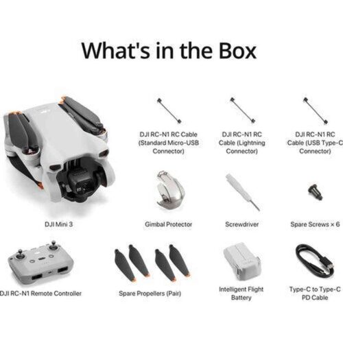 Fly longer with improved social media support when filming with the Mini 3 Drone from DJI. Compared to the previous generation, the Mini 3 sports improved wind resistance and battery life, now offering up to 38 minutes of flight time. It also adds true vertical shooting, which is a feature that lets you rotate the gimbal 90° to film vertical shots that can be immediately shared on social media platforms. Like the Mini 2, the Mini 3 captures stunning videos in 4K HDR, uses OcuSync 2.0 for a transmission range of up to 6.2 miles, and includes a host of automated functions to make piloting easier. This version of the Mini 3 gets you in the air quickly, with the inclusion of an RC-N1 remote, flight battery, and more.