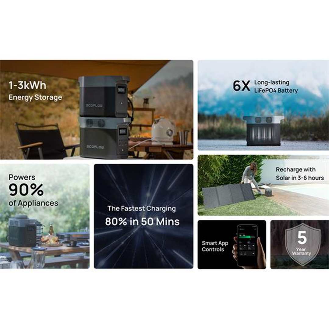 Expandable Capacity (1–3kWh) – Add DELTA 2 Extra Battery (2,048Wh) or DELTA Max Extra Battery (3,040Wh).