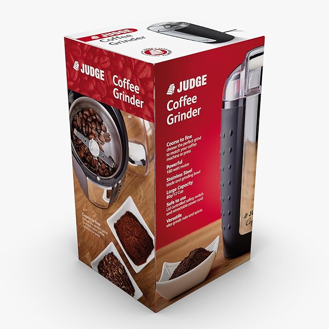There’s nothing quite like the aroma of freshly ground coffee to start your day right. With the Judge JEA86 Coffee Grinder, you can enjoy café-quality coffee from the comfort of your own kitchen. Compact, powerful and incredibly easy to use, this grinder turns whole beans into perfectly ground coffee in seconds — unlocking richer flavour and deeper aroma in every cup.