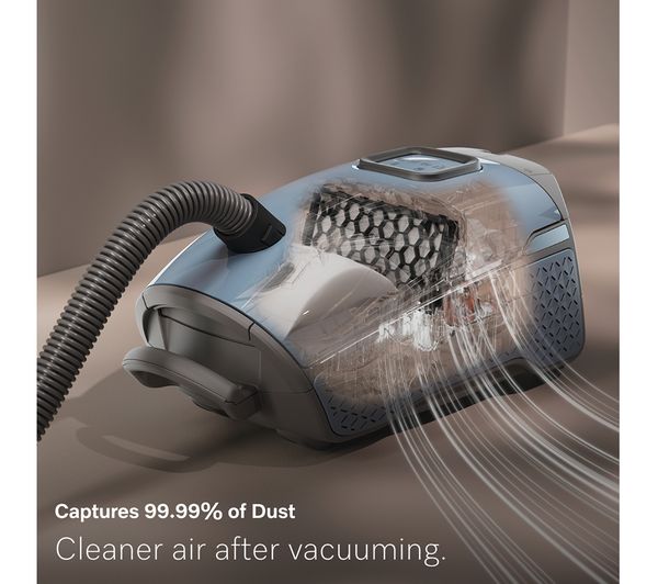 ComfortFit dustbag system ensures hygienic bag changes and a secure fit—bags feature 80% recycled material