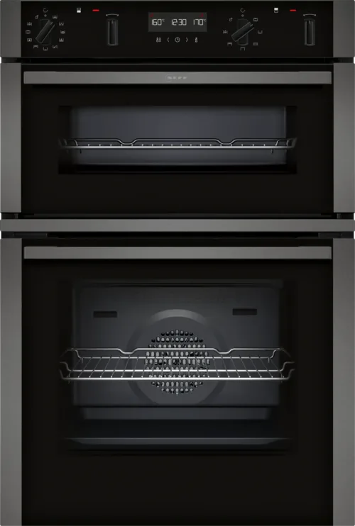 The Neff U2ACH7AG7B Built-In Double Oven is a perfect choice for passionate home cooks who want style, functionality, and superior performance all in one. With its striking graphite grey finish and smart, user-friendly features, this double oven will elevate your cooking experience. Designed for those who love to cook multiple dishes at once, it offers spacious capacity and innovative technology to help you achieve perfect results every time.