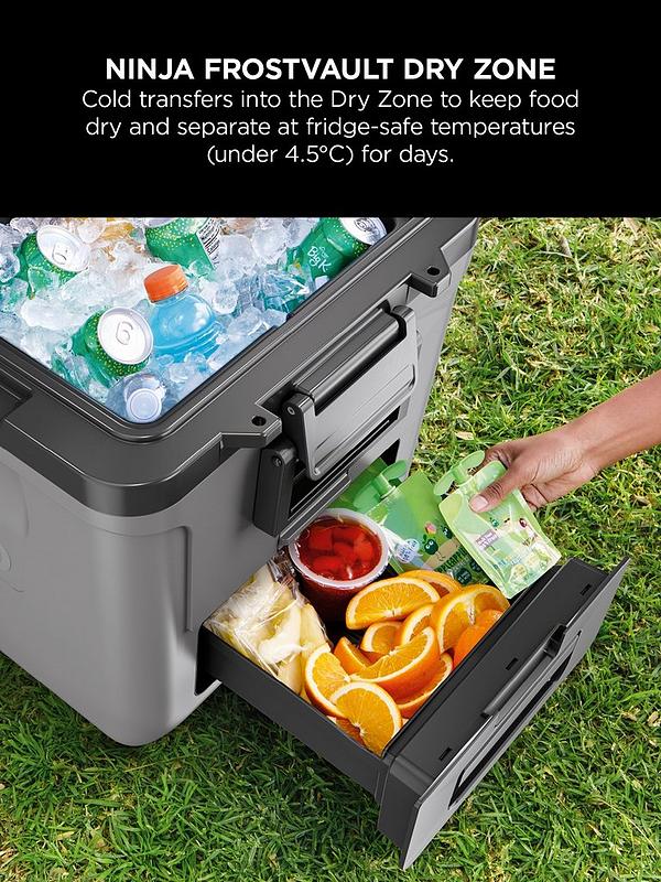 The standout feature of the Ninja FrostVault is its innovative Dry Zone drawer. Instead of digging through ice to find snacks or sandwiches, the drawer keeps food items separate while still maintaining safe cold temperatures. This means less mess, easier access and better food organisation during your trip.