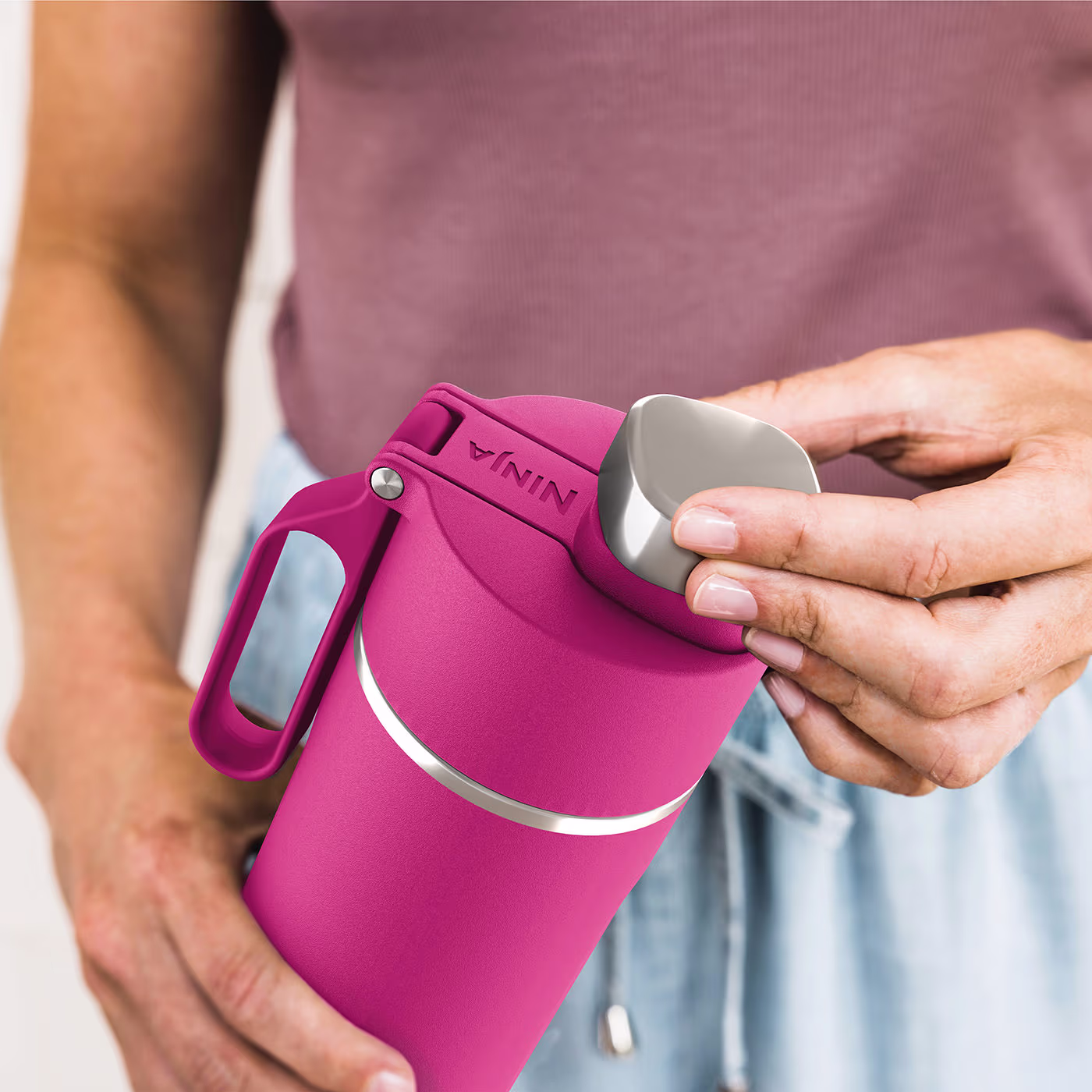 The Ninja Thirsti bottle isn’t just practical — it’s designed to fit seamlessly into your routine. The comfortable drinking spout, ergonomic grip and sleek profile make it easy to carry, drink from and store. Whether you love ice-cold water, hot coffee or sparkling drinks, this bottle delivers consistent performance all day long.
