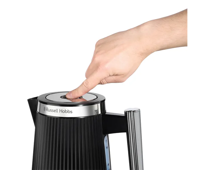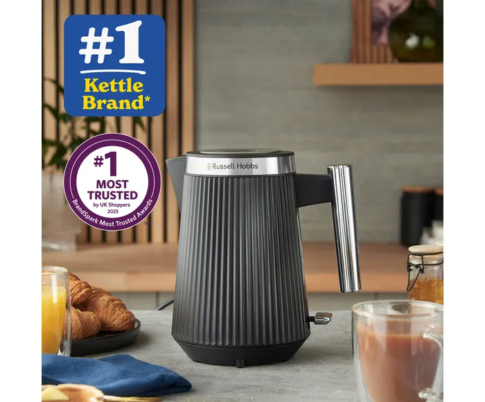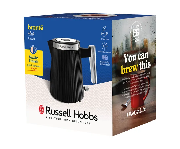 Looking to give your morning cuppa a touch of class? Meet the Russell Hobbs Brontë Kettle 26750, where timeless design meets modern convenience. With its elegant matte black finish, eye-catching fluted texture, and a hint of chrome detailing, this kettle isn’t just an appliance — it’s a statement piece for your countertop.
