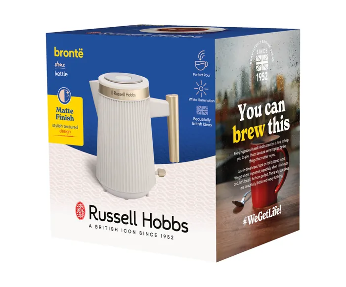 Transform your morning routine with the Russell Hobbs Brontë Kettle 26751 — a kettle that’s as beautiful as it is practical. With its striking Stone finish, brushed gold accents, and fluted design, this kettle doesn’t just boil water — it elevates your entire kitchen.