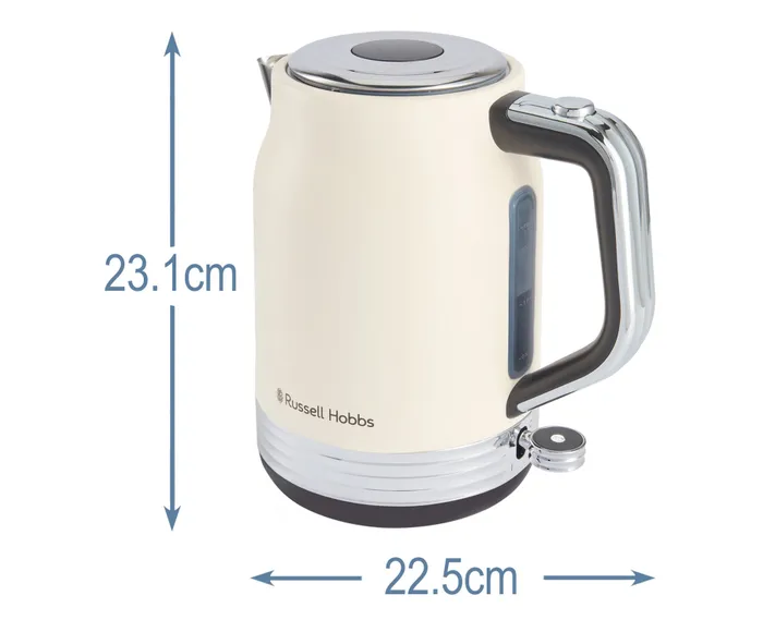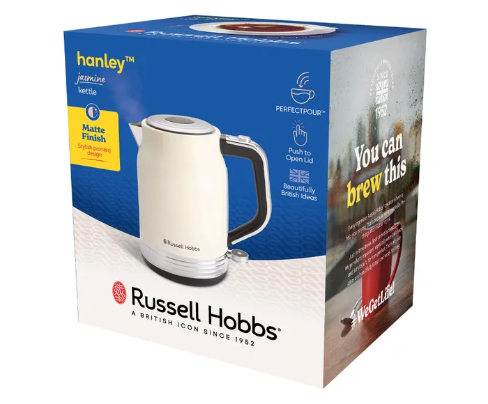 Start your mornings with a touch of elegance and a splash of efficiency with the Russell Hobbs Hanley Jasmine Kettle 28640. Designed to turn heads while making your tea or coffee faster, this kettle combines sleek matte Jasmine cream finish with polished detailing — the perfect addition to modern or classic kitchens alike.