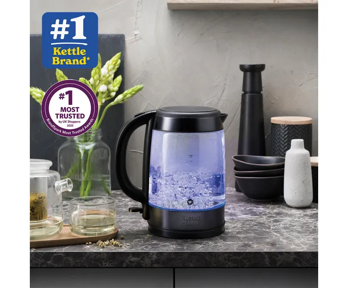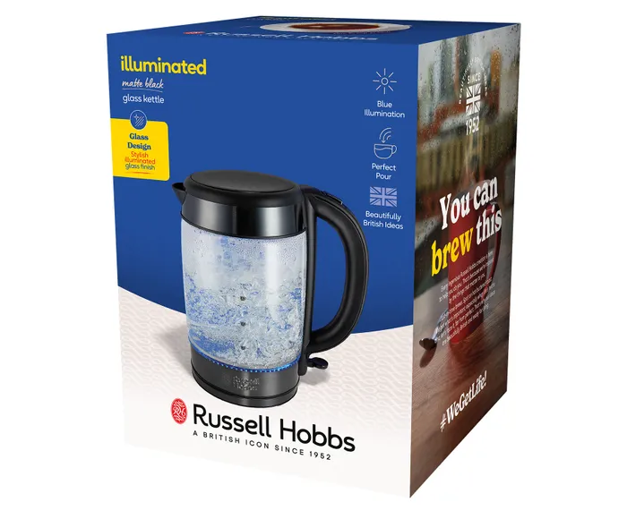 Light Up Your Kitchen with the Russell Hobbs Illuminating Glass Kettle – Matte Black (Model 27750)