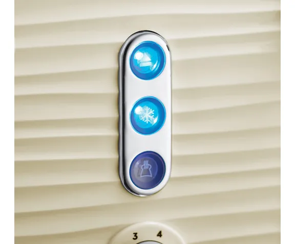 Start your day inspired with the Russell Hobbs Inspire 4-Slice Toaster in Cream — where style meets substance. With its beautiful ripple-textured finish, polished chrome accents, and soft blue illumination, this toaster isn’t just an appliance — it’s a showpiece for your kitchen.