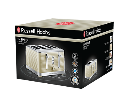 The Russell Hobbs Inspire Range is all about turning everyday appliances into pieces of design. With its luxurious rippled texture and chrome details, the range oozes sophistication. And if you love matching style, pair your toaster with the Inspire Cream Kettle (Model 24364) — together they make a truly stunning countertop duo.