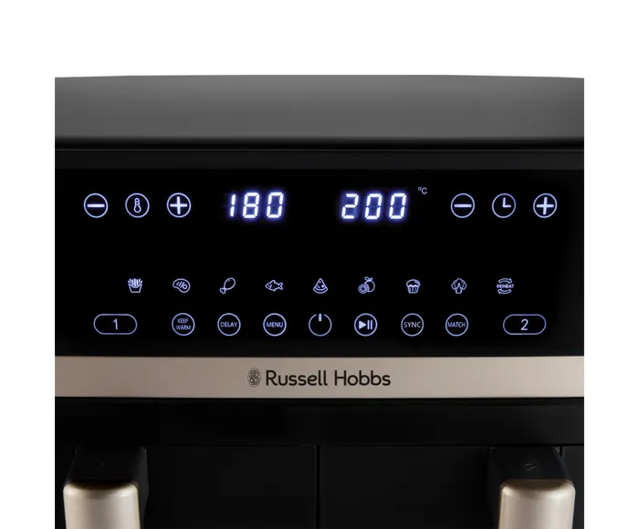 Upgrade your kitchen with the Russell Hobbs 27680 Satisfry Dual Basket Air Fryer — where faster cooking meets healthier eating and modern convenience!