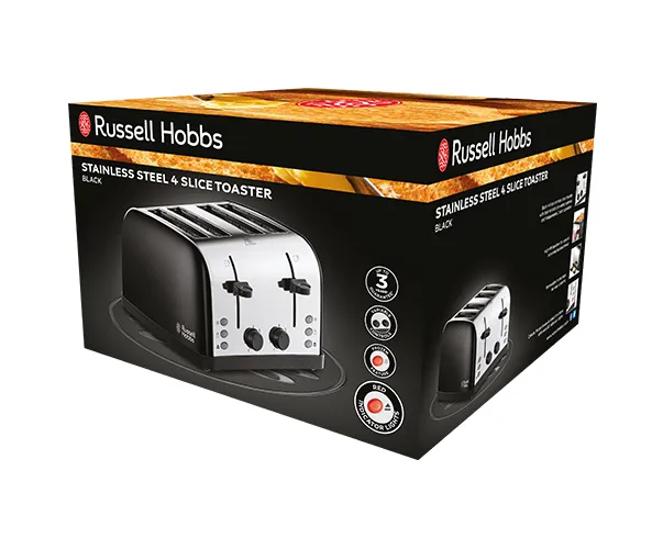Russell Hobbs Stainless Steel Black 4 Slice Toaster 28360