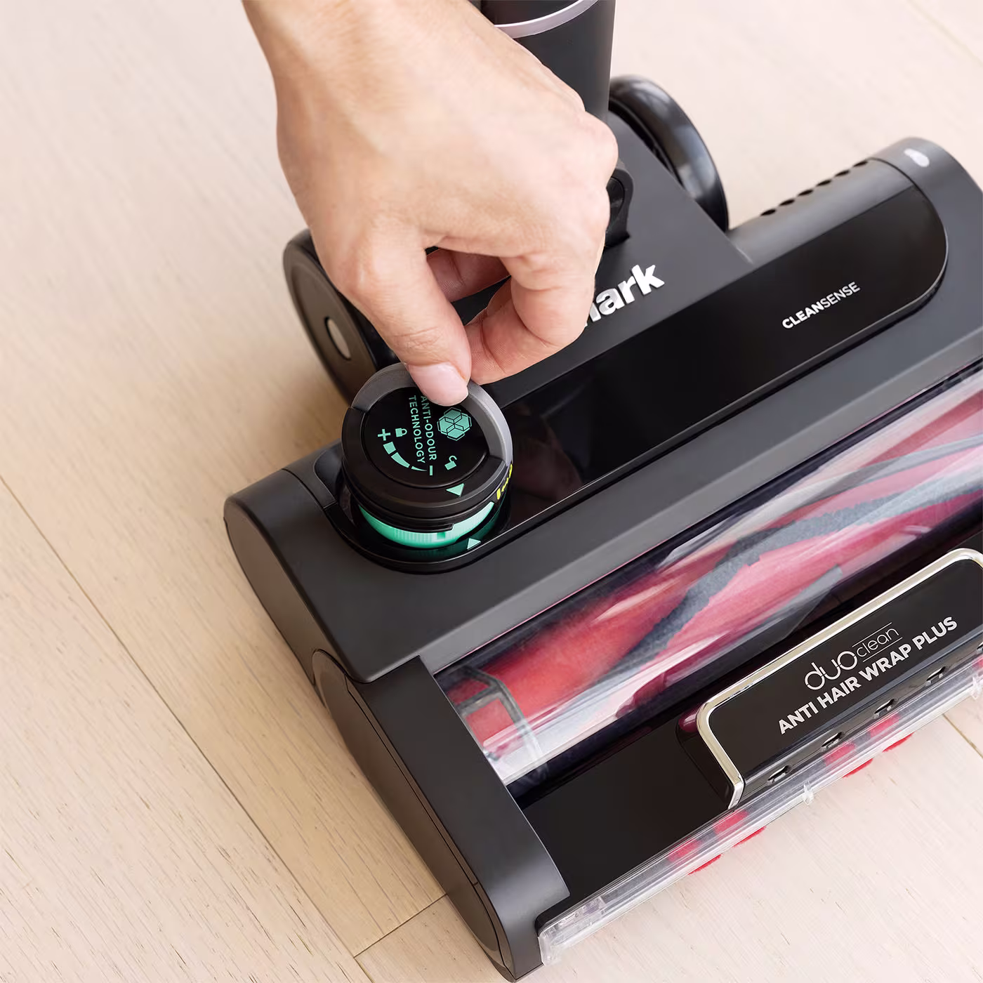 A unique cartridge system guards against dust cup odours commonly caused by hair, dust and dander. Simply insert the Anti-Odour Technology dial into the floorhead and rotate to select an intensity setting.