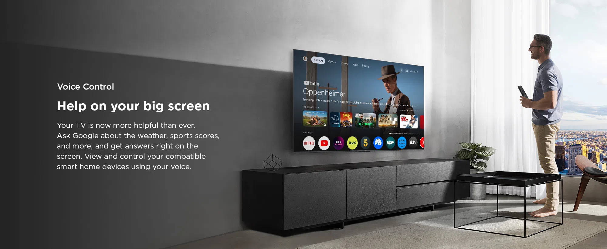 With Google TV built-in, all your favourite apps and content are in one place. From Netflix and YouTube to Disney+, everything is easily accessible.