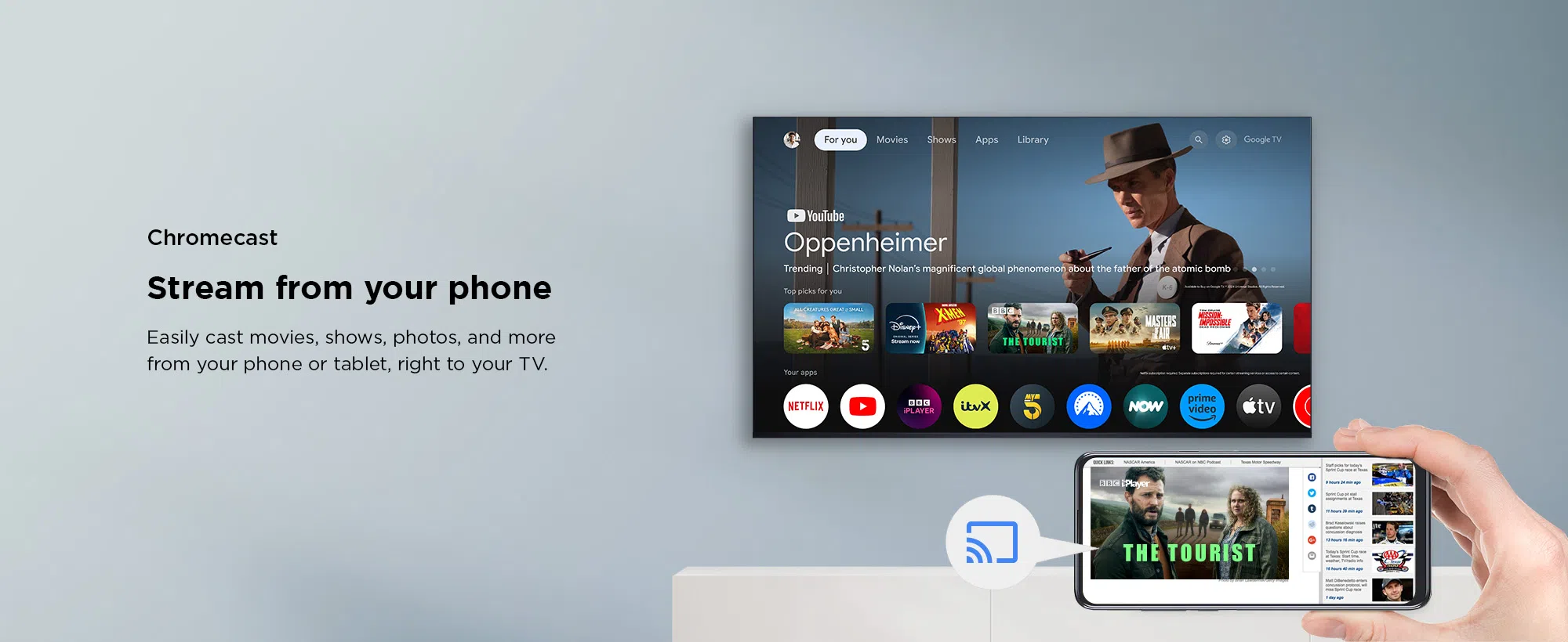 • Built-in Chromecast & screen mirroring