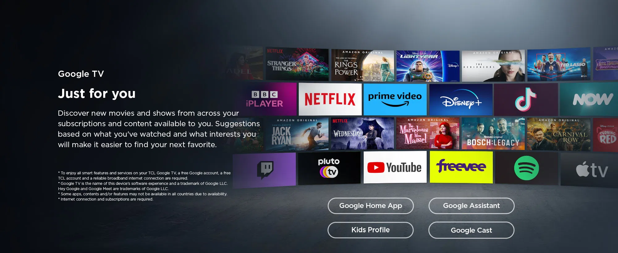 •  Google TV with access to Netflix, YouTube, Disney+ & more