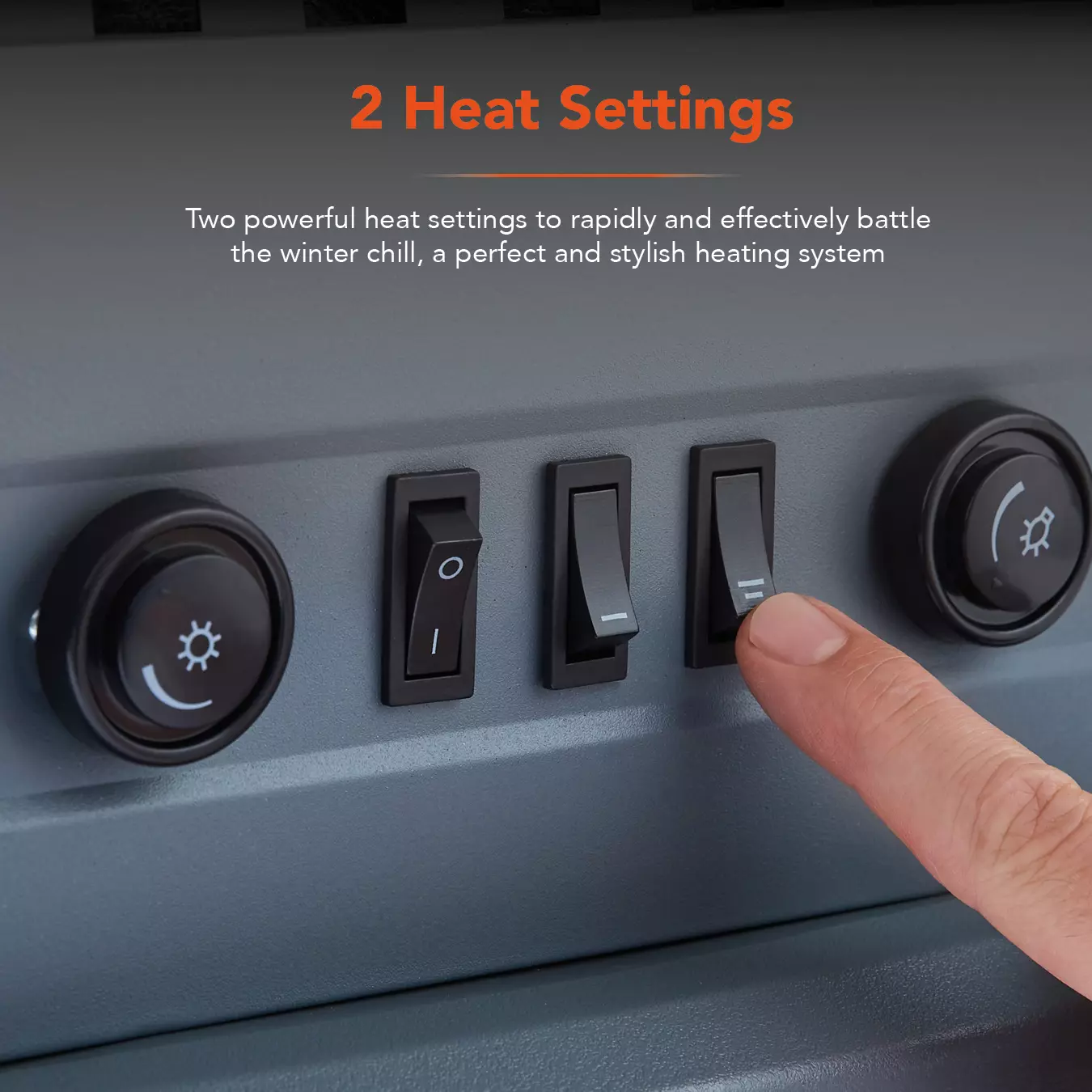 Two Heat Settings (1000 W & 2000 W) — Choose gentle warmth or a stronger heat output to suit the day.