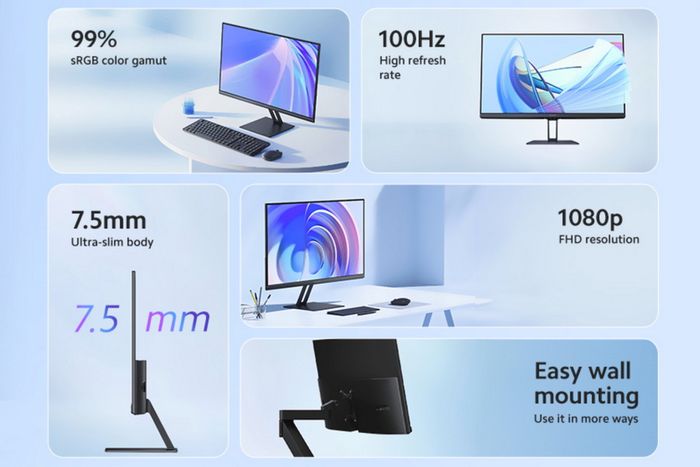 • Ultra-slim 7.5mm body & ultra-narrow bezels — modern look, minimal distractions, ideal for multi-monitor setups
